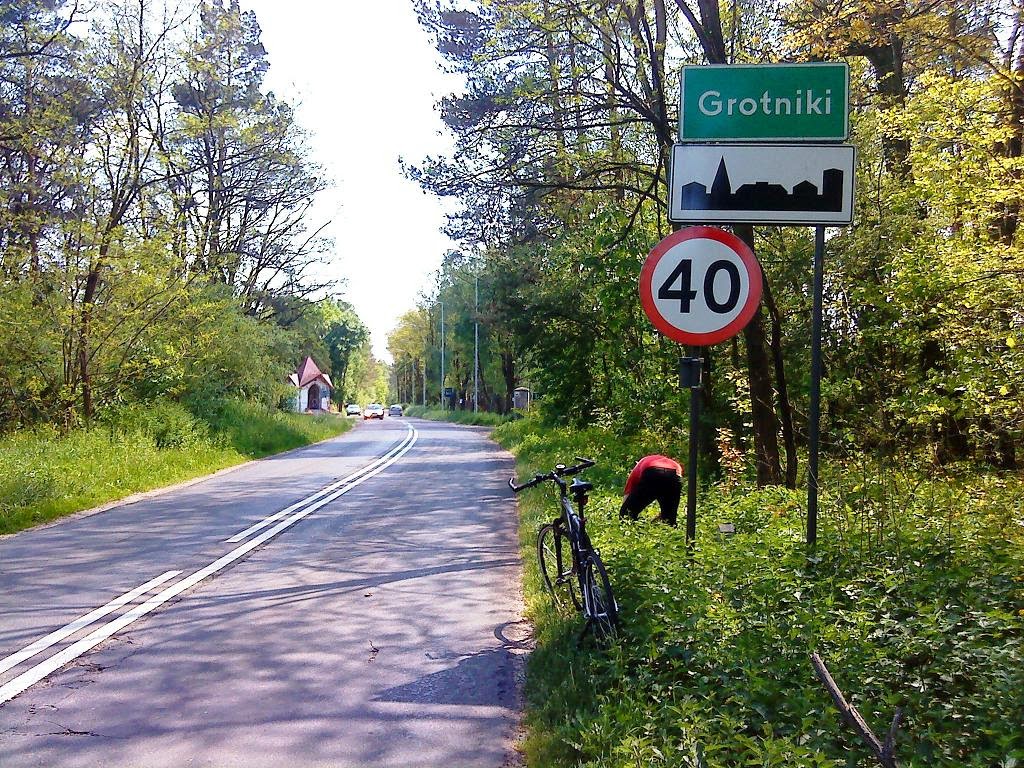 | Po obu stronach drogi można podziwiać piękny las. Szybko dojeżdżam do Grotnik. |