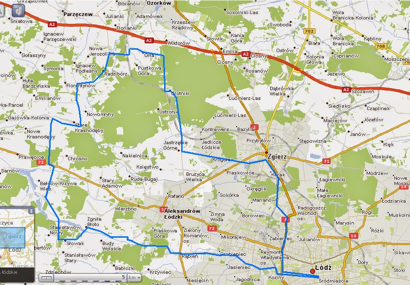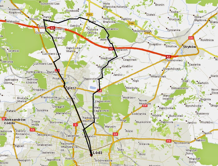 Wycieczkę zaczynam z Placu Wolności. Jadę ulicą Zgierską przez Radogoszcz do Zgierza. Tam ul.Łęczycką i Ozorkowską do ul.Ogrodniczej, gdzie skręcam w prawo i potem w lewo w ul.Ciosnkowską. Tak dojeżdżam do Rosanowa. Droga cały czas prowadzi z górki, więc radość z jazdy jeszcze większa.