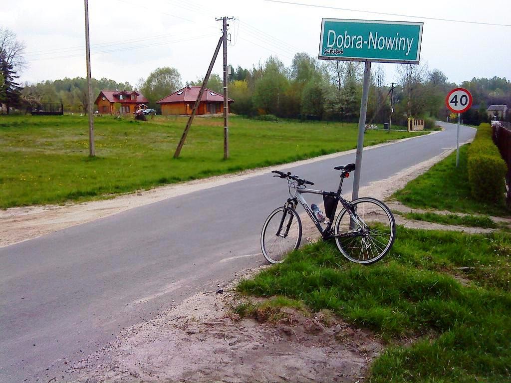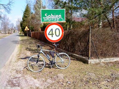 Jadę przez piękny sosnowy las i przed nami Sobień. Przez wieś prowadzi prosta, równa szosa i naprawdę można tam rozpędzić rower do dużych prędkości.
