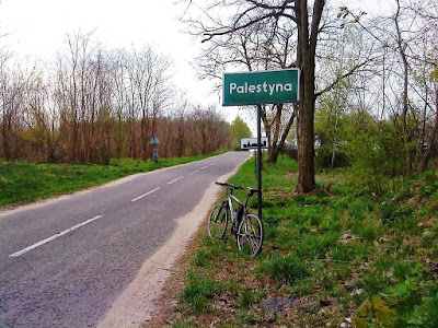 Za dobrze zaopatrzonym sklepem skręcam w lewo (przy tabliczce z miejscowością Józefów) i podjeżdżam do przejazdu kolejowego. Po zaliczeniu trudnego podjazdu czeka na mnie niespodzianka ! O Święta Ziemio !!! Mr SCOTT w Palestynie !!!