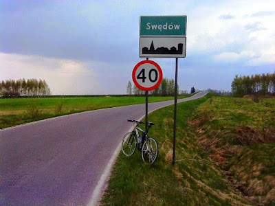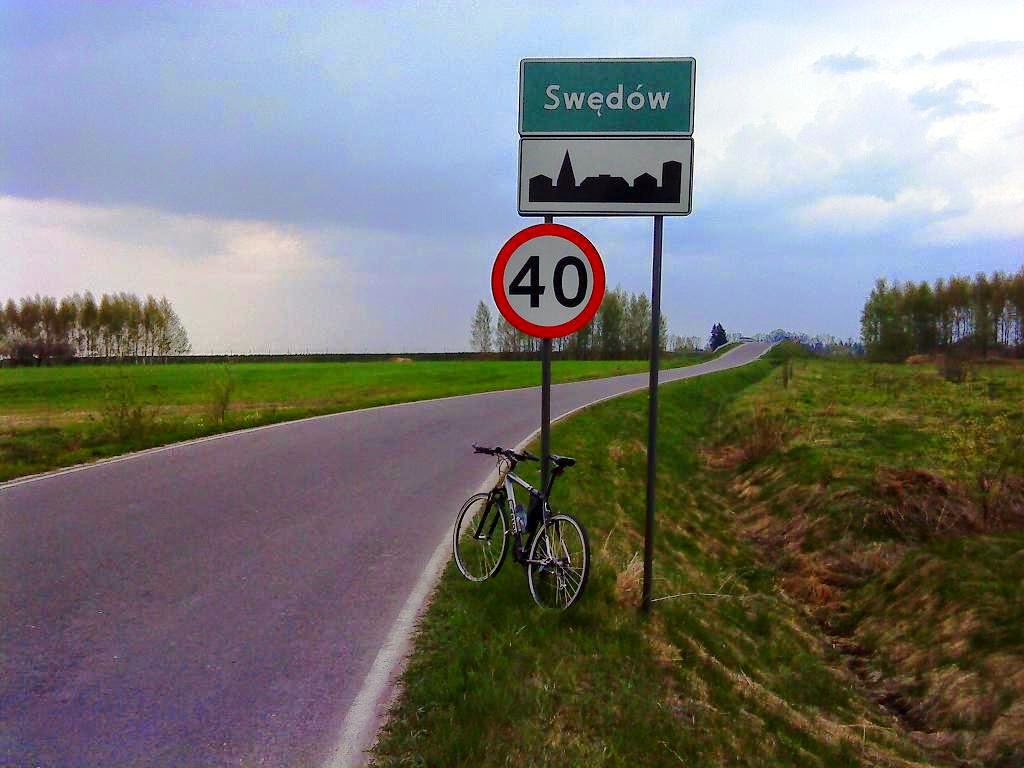 Wspinam się na wiadukt nad autostradą A-2 i jadę z górki do skrzyżowania, gdzie skręcam w lewo do stacji PKP Swędów.