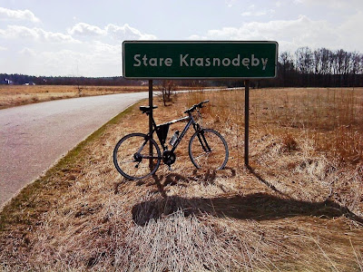 Mijam zjazd w stronę Sokolej Góry. Jedzie się lekko z górki - droga jest równa, więc można przycisnąć na pedały ile sił w nogach.