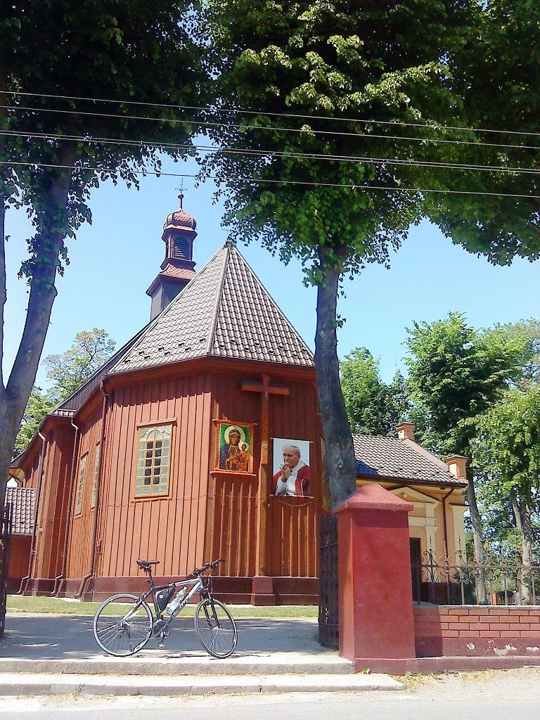 Po kilkuset metrach wjeżdżam do Białej. Warto się tu na chwilę zatrzymać, by podziwiać zabytkowy, drewniany kościół p.w. Świętych Apostołów Piotra i Pawła z drugiej połowy XVIII wieku. |