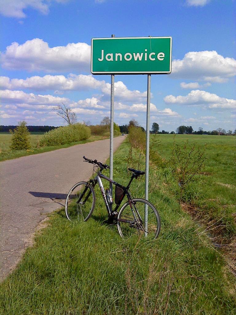 Daję tzw. "czadu" bo droga nam sprzyja i już Janowice ! Przejeżdżam na wprost przez pobliskie skrzyżowanie (w lewo na Lutomiersk, w prawo na Poleszyn). |