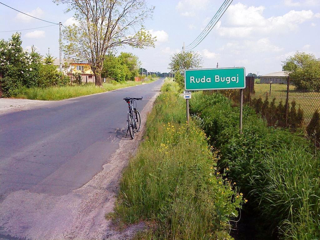 | Za ostrym zakrętem w prawo znajduje się Ruda Bugaj. Wieś została założona przez kolonistów z Niemiec wyznania ewangelickiego. |