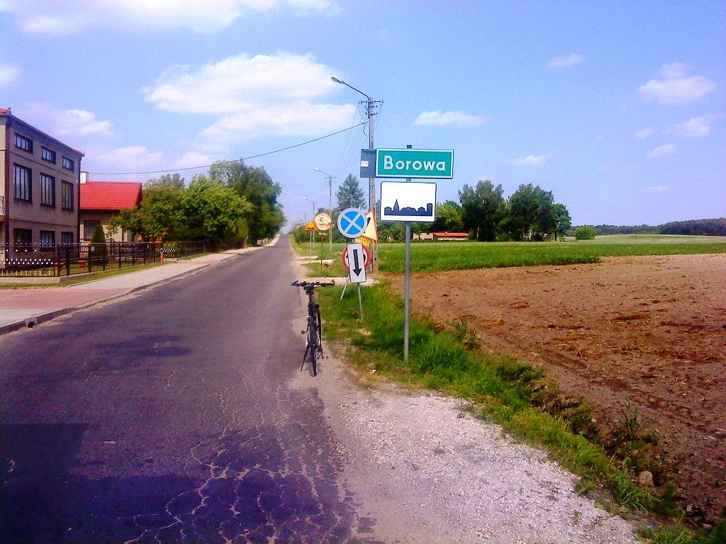 | Szybko docieramy do wsi Borowa w gminie Koluszki. Pokonuję stromy podjazd i potem za sklepem spożywczym, skręcam w lewo w stronę lasu. |