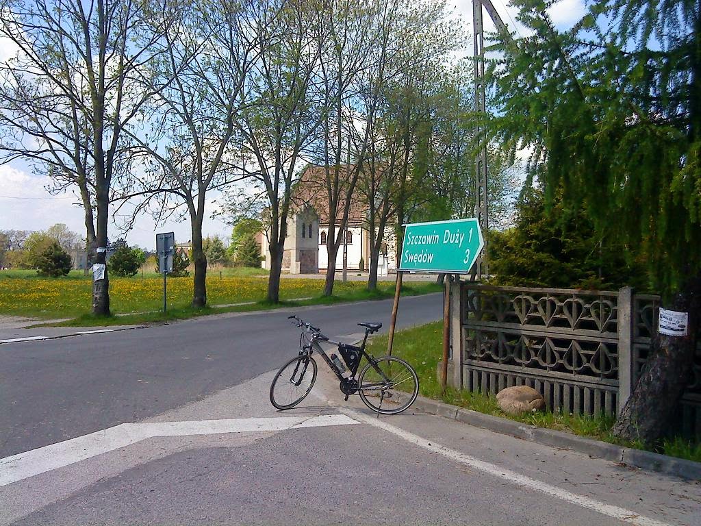 | Podziwiam nową autostradę A-2. Mijam kościół i jadę dalej prosto przez Szczawin i bardzo malowniczy las. |
