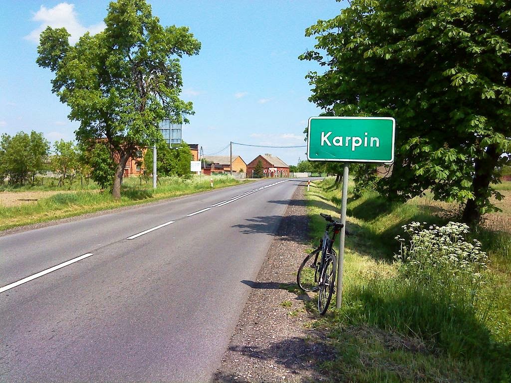 | W Karpinie trzeba uważać na niebezpiecznym skrzyżowaniu z drogą wojewódzką nr 713. Jadę dalej prosto na północ. |