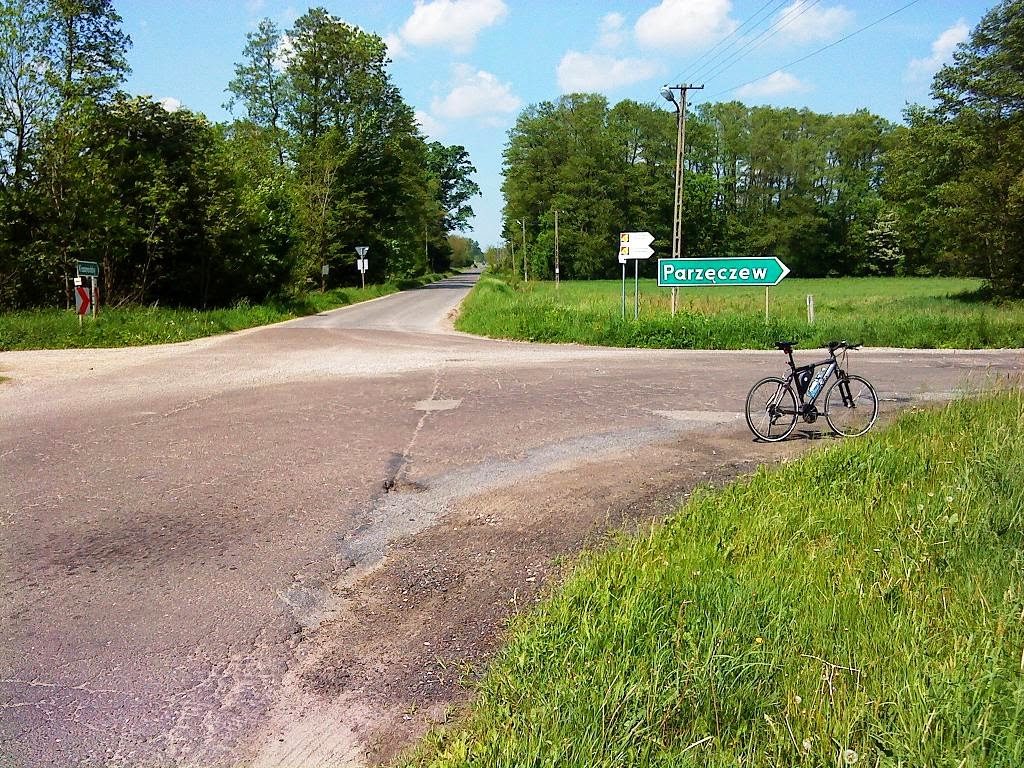 | Wyjeżdżam z Parzęczewa kierując się na rozjeździe w prawo. Droga w lewo prowadzi do wsi Budzynek. |