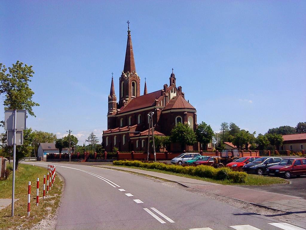 Mała wieś Mikołajewice może poszczycić się drewnianym kościołem parafialnym p.w. Narodzenia Najświętszej Maryi Panny oraz św. Piotra i Pawła, przebudowanym i rozbudowanym w roku 1774 i 1812 poprzez dodanie wieży. Jadę dość szybko wspaniałą drogę na zachód. Wzdłuż nowej trasy piękne lasy. Mijam wieś Alfonsów i docieram do krzyżówki w Wodzieradach. |