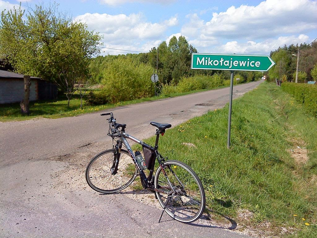 Stamtąd po kilku minutach wjeżdżam do letniskowej wsi Wrząca. Mijam budynki szkoły i po około 300 metrach skręcam w prawo. Jadę przez starą wieś mocno pedałując, bo asfaltowa droga biegnie lekko pod górkę. Docieram do trasy Lutomiersk - Janowice. Skręcam w lewo i po kilkuset metrach mijam zjazd w lewo do wsi Zalew. Następnie w Wygodzie Mikołajewskiej skręcam w prawo do wsi Mikołajewice. |