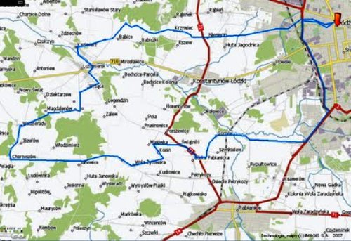 TRASA : Łódź (Plac Wolności, Ogrodowa, Srebrzyńska, Al.Włókniarzy, Drewnowska, Solec, Biegunowa, Jagodnica, Złotno) - Konstantynów