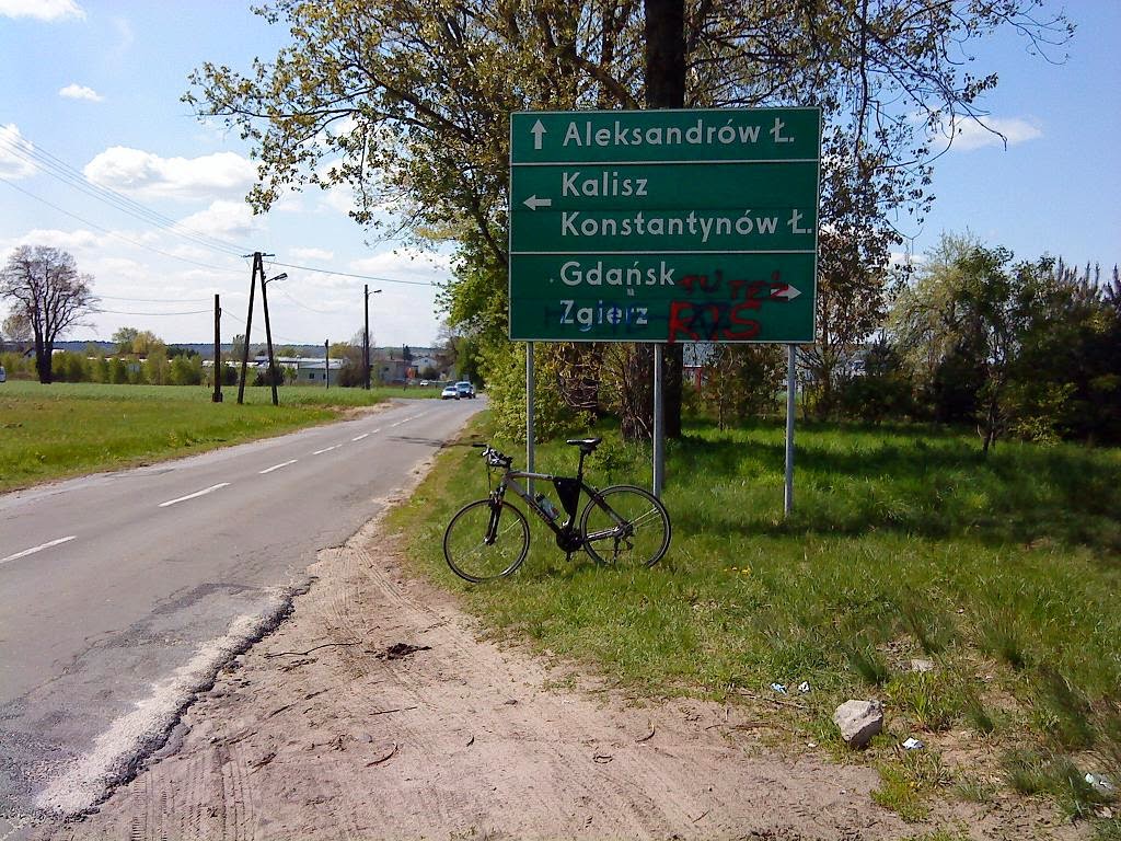 | Ulicą Wojska Polskiego i biegnącą wzdłuż niej ścieżką rowerową, docieram do rogatek Łodzi. Trzeba uważać, bo ruch na ulicy Aleksandrowskiej jest duży a jezdnia zniszczona - pełno w niej dziur i kolein. |